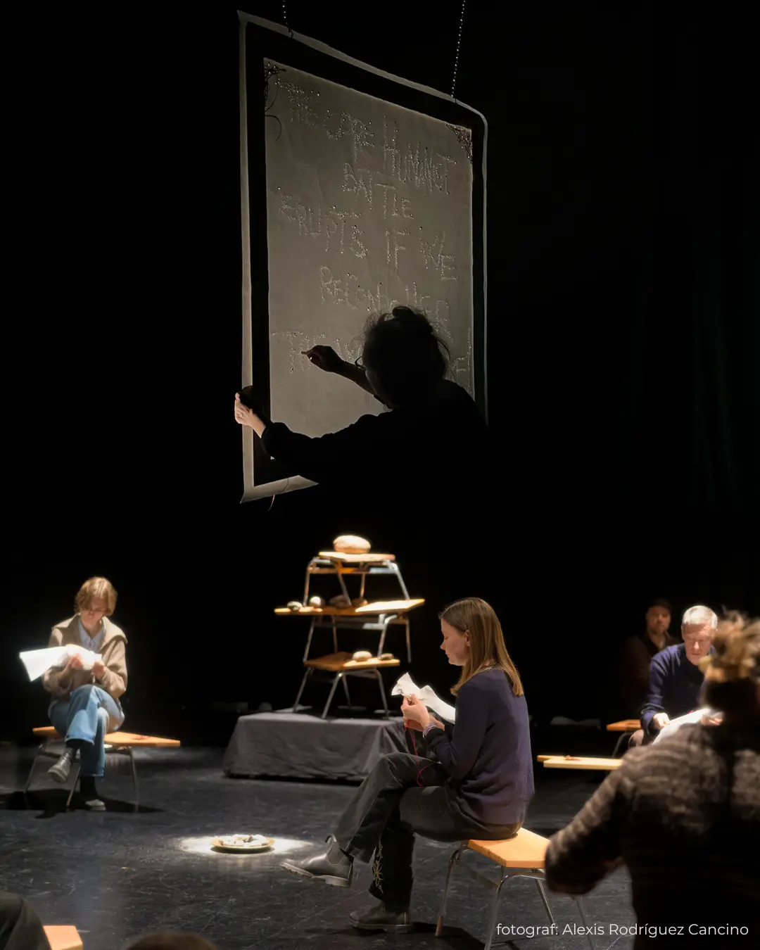 Opgaven lød på at designe og bygge scenografien omkring værket: inventar, plint, bænke og tribuner samt lysdesign – alt sammen med fokus på at understøtte både deltagende og observerende publikum.